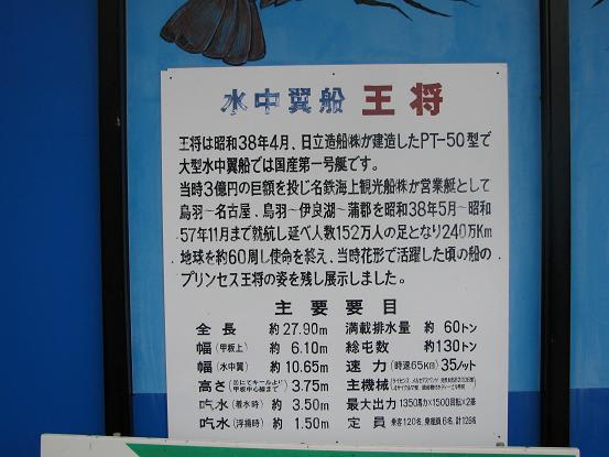 ところでこの水中翼船「王将」、予約制で船内で美味しい海鮮料理が食べられるようですが、残念ながら今回は諸般の事情からゆっくりと外から眺める暇すらなく立ち去ることになってしまいました。