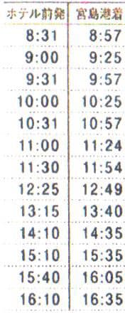 各時00分発の便がホテル前が始発の便。それ以外は広島港からの便です。