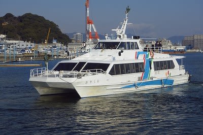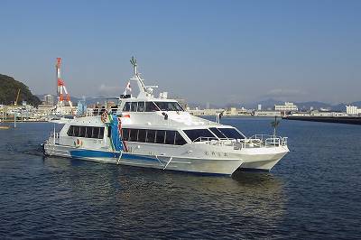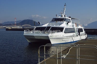 通常運航では、瀬戸内シーラインの双胴高速艇「おやしお」が就航しているのですが、事前に仕入れていた情報では、更に双胴艇が1隻、あと単胴艇が1隻来るだろうということでした。