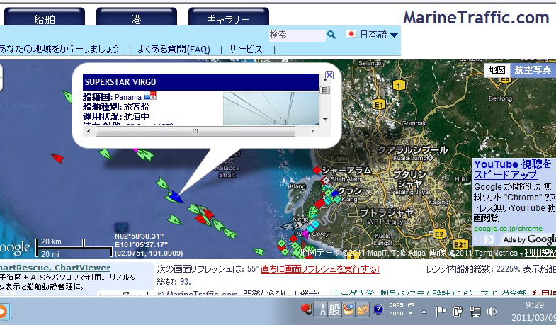 プロフィールを見る今日あらためて、来週はじめから乗る船が通るマラッカ海峡の船舶通行状況を
