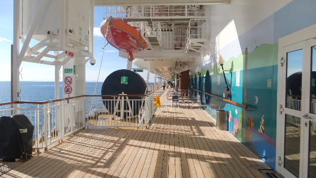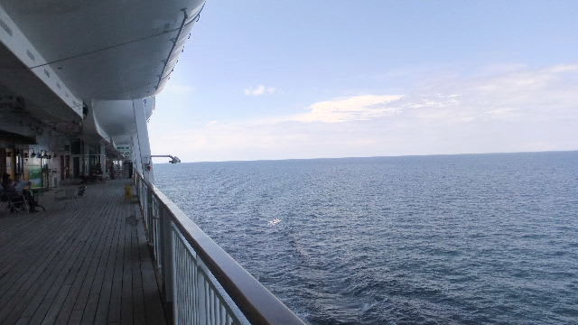 ◆朝のデッキ 船の夜は遅い。早朝は人がいない。