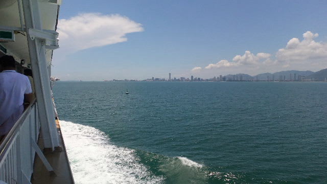 しばらくするとペナン島と、マレー半島の中間に船を進める。次第に着岸バースが迫ってくる。
