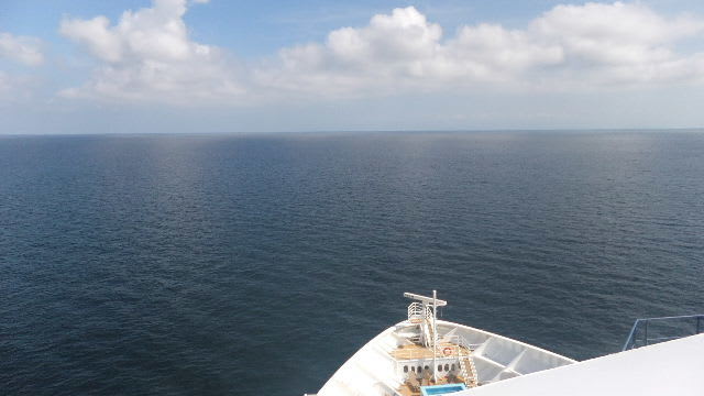 食後デッキで長く海を眺める。本当に天気がよい。しかし太陽がまぶしすぎる。