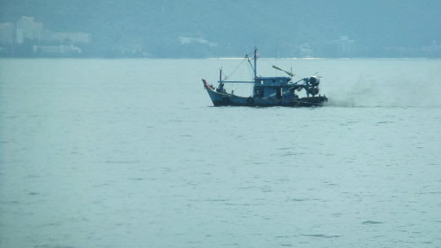 だんだんとマレー半島が大きくなる。漁船もちらちら見えてくる。変な船だ。