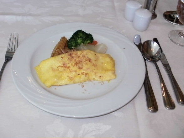 アジア3ヵ国クルーズ「SuperStar Virgo マラッカ海峡を往く26」 最後の昼飯 なんと「鰹節オムレツ」