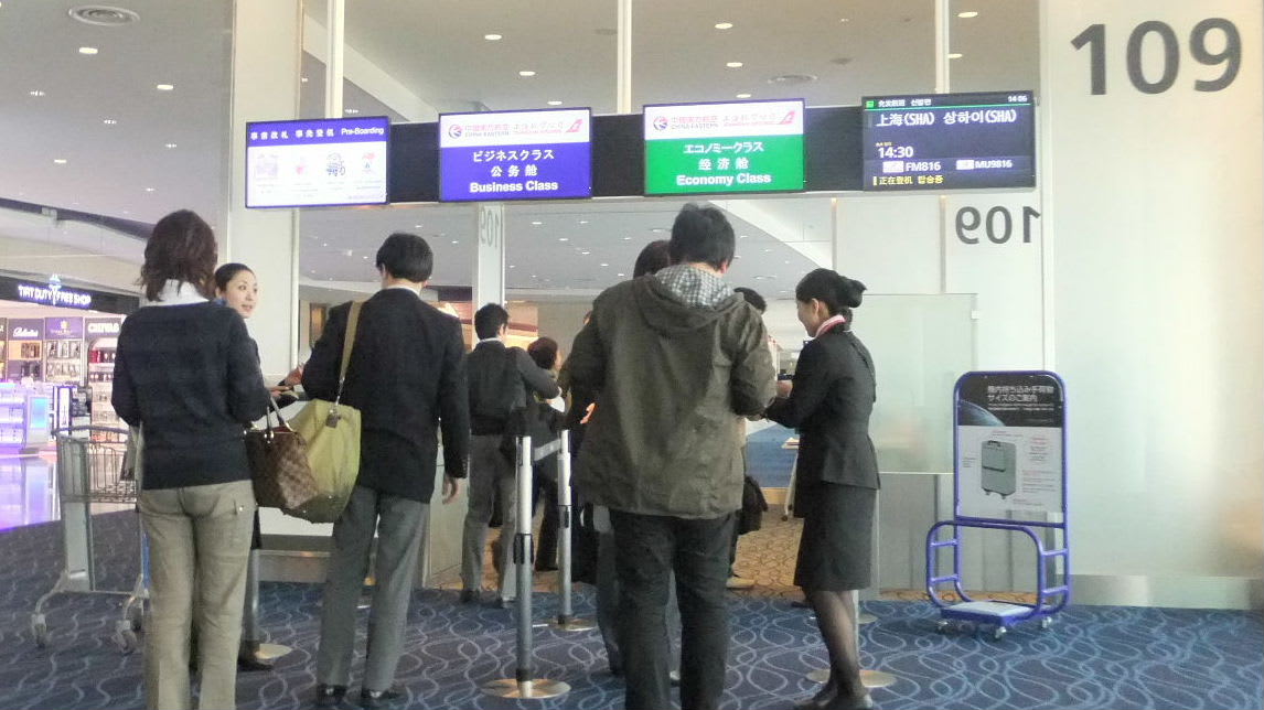 14:30羽田発 16:30上海虹橋空港到着。ちなみに事前オンラインチェックインはない。