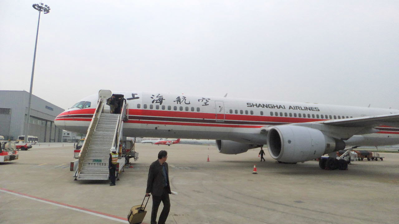 階段をふみ、上海の地を踏む。タラップ何年ぶりか。