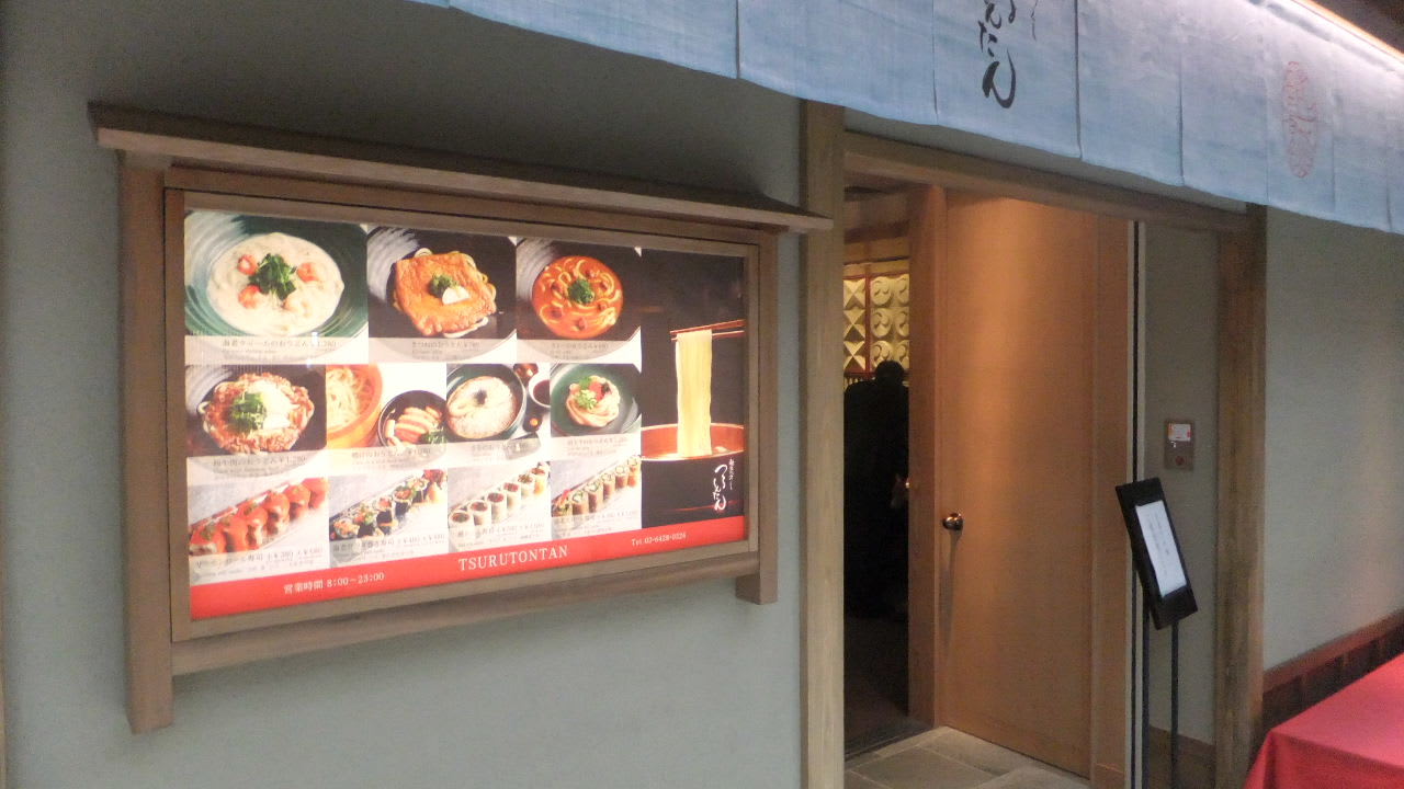 華やかなレストラン街をあるくと、うどんの有名店「つるたんとん」がある。
