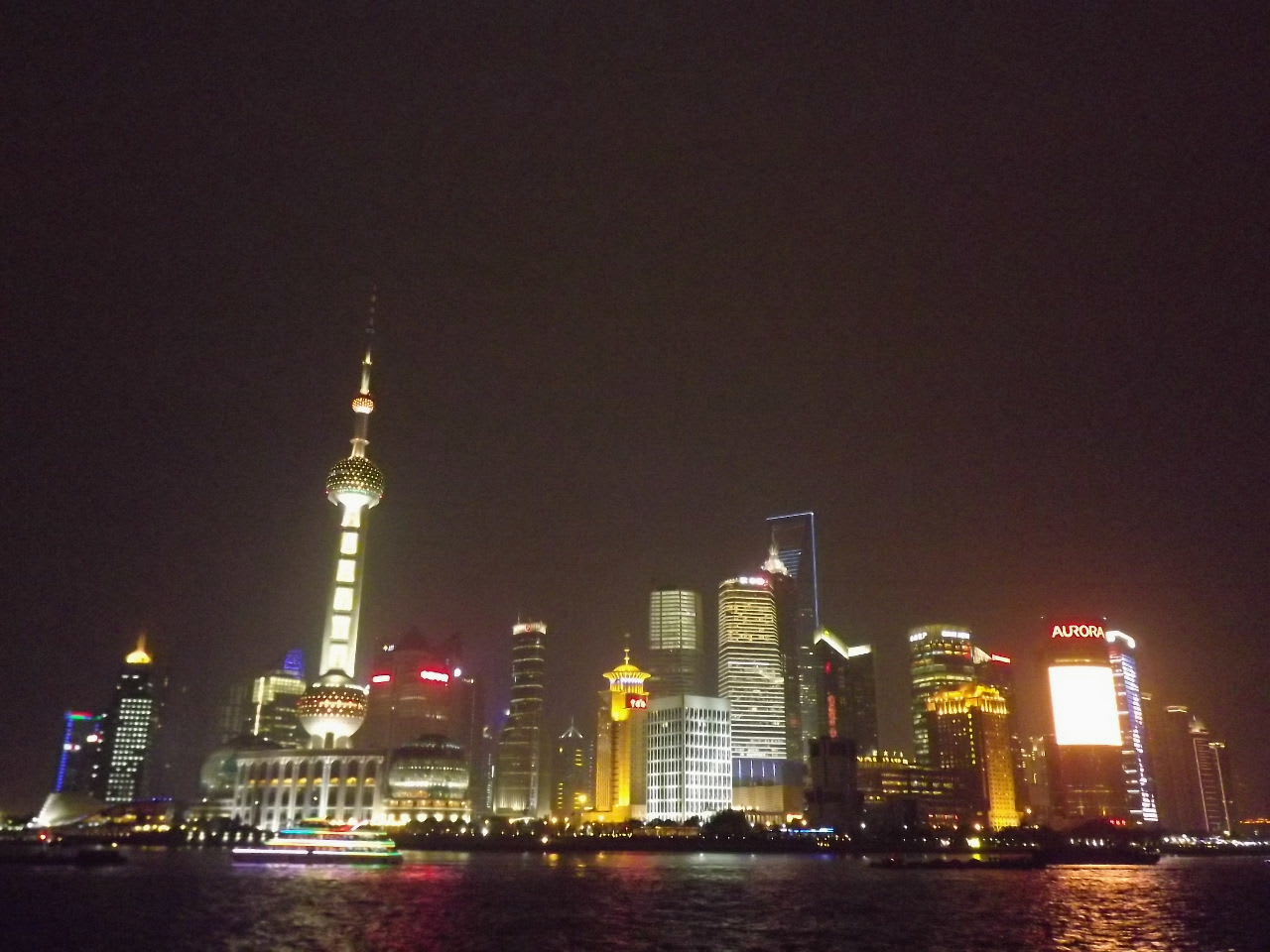 上海の夜が更にふける、夜景の光はなんとも明るく、地震の後の東京との違いに