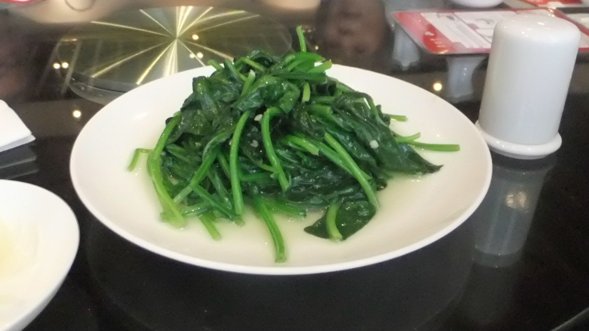 次に、青菜の炒め物、塩味だが、炒め方が強火で短時間調理の為か