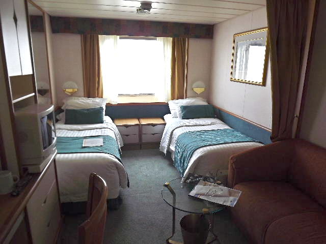 さて、今回私のキャビンは前回と同様、オーシャンビュー。角窓のツインルーム