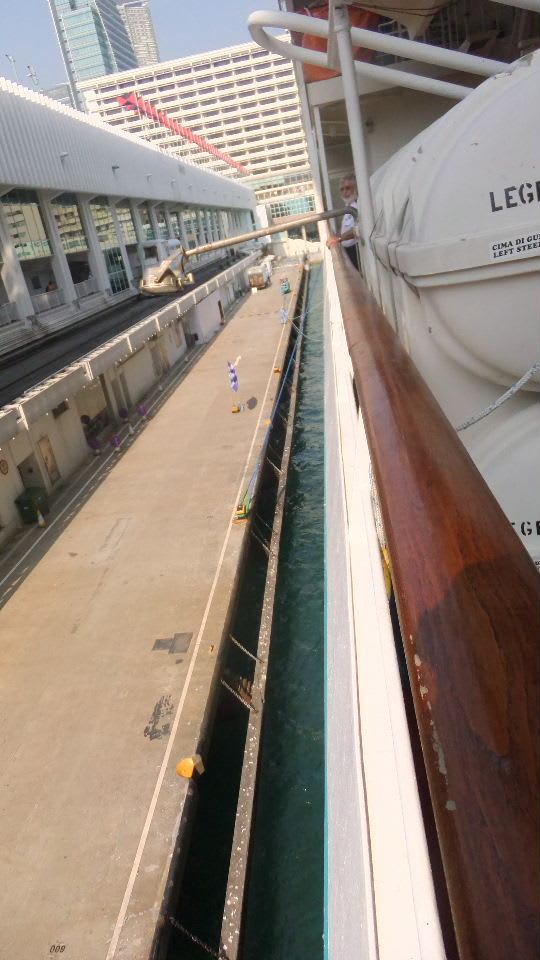 いよいよ着岸、上海の宝山と違いここは街のど真ん中。