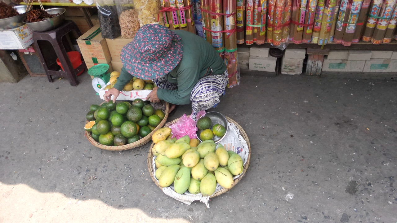 さて南国と言えばまずフルーツ。大きなフルーツ野菜のお店も沢山あったが、街角で網ざるに果物を並べ販売している姿も多い。