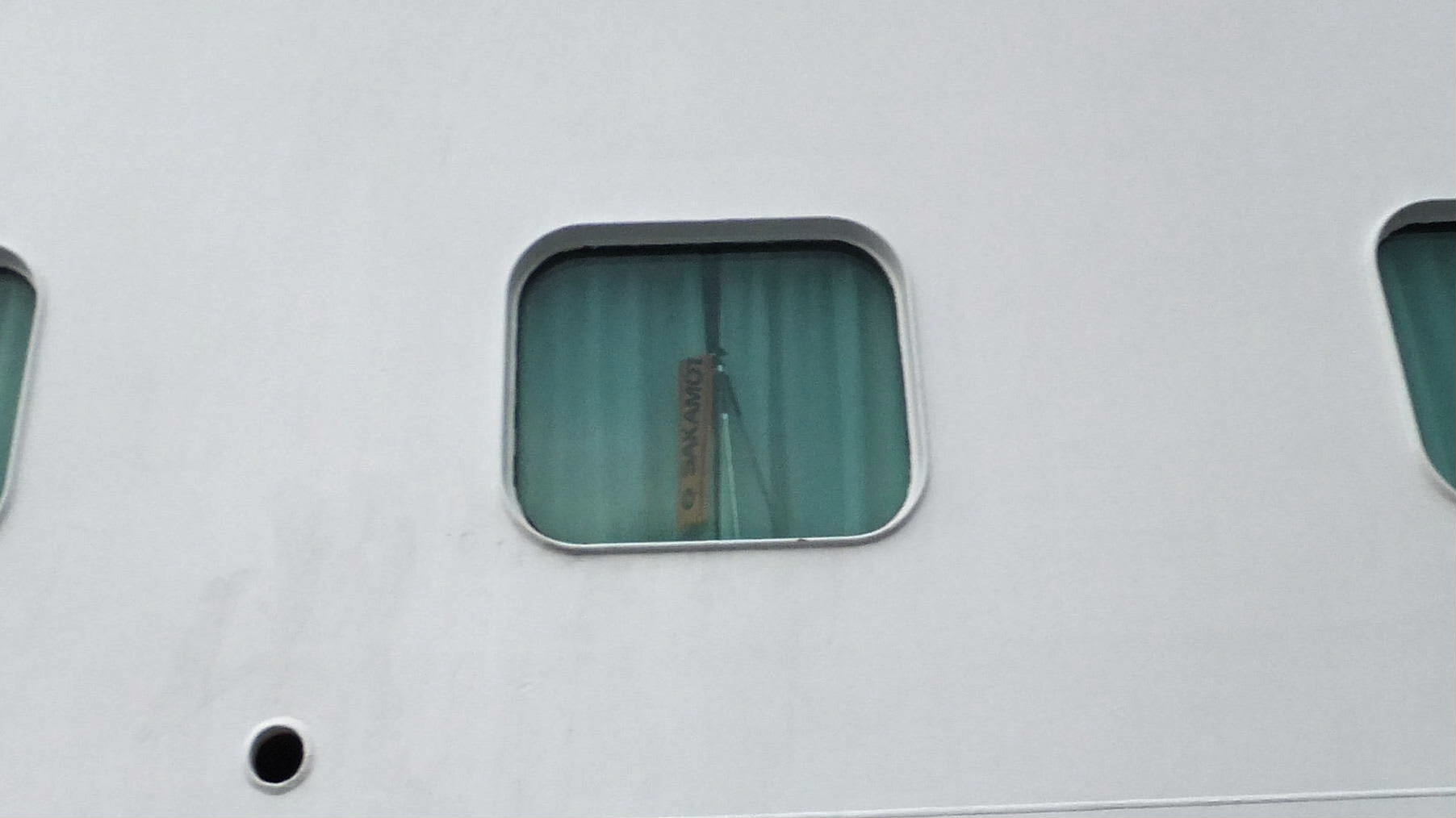 船を見ると、窓にジャイアンツ応援タオルをぶら下げたキャビン
