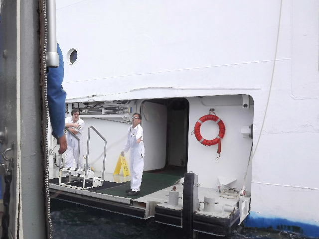もう土産を買う時間もない、急ぎテンダーに乗り込む。