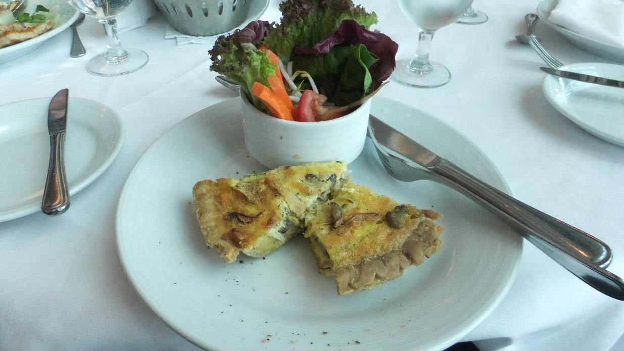 メニューを見てポタージュスープとキッシュを選んだ、キッシュに添えられる