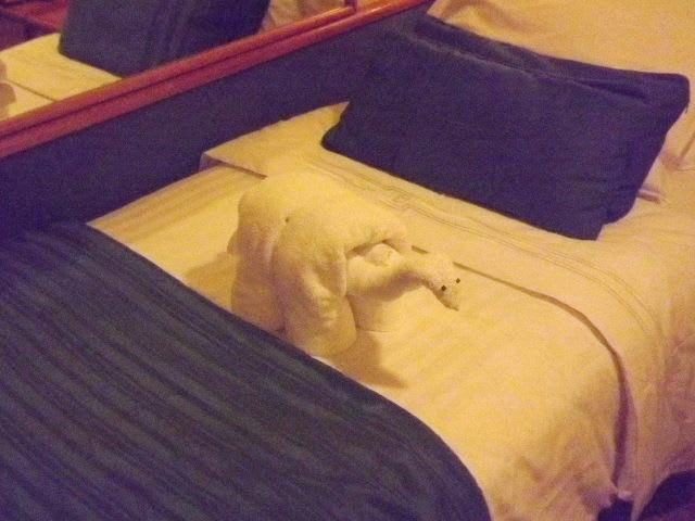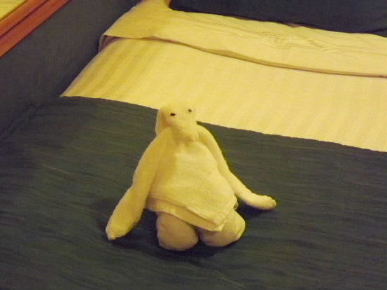 毎日キャビンに戻ると多彩な、タオルで作った動物が飾られている。