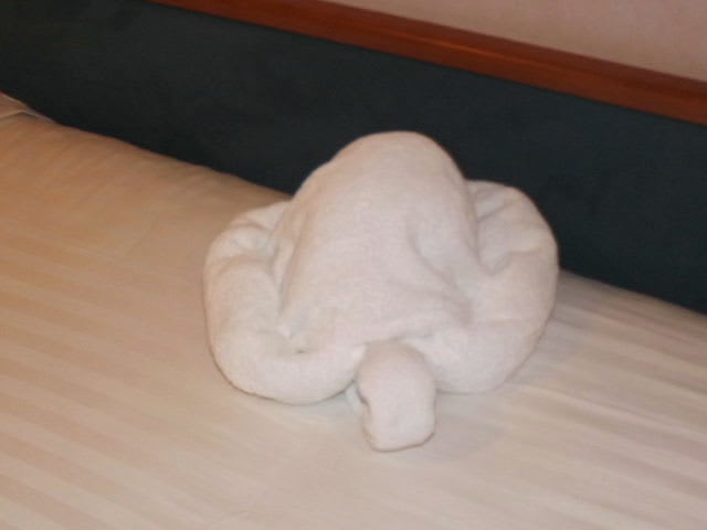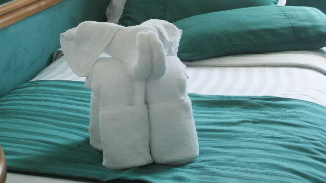 この航海を振り返り、今日はタオルアートをご覧にいれよう。