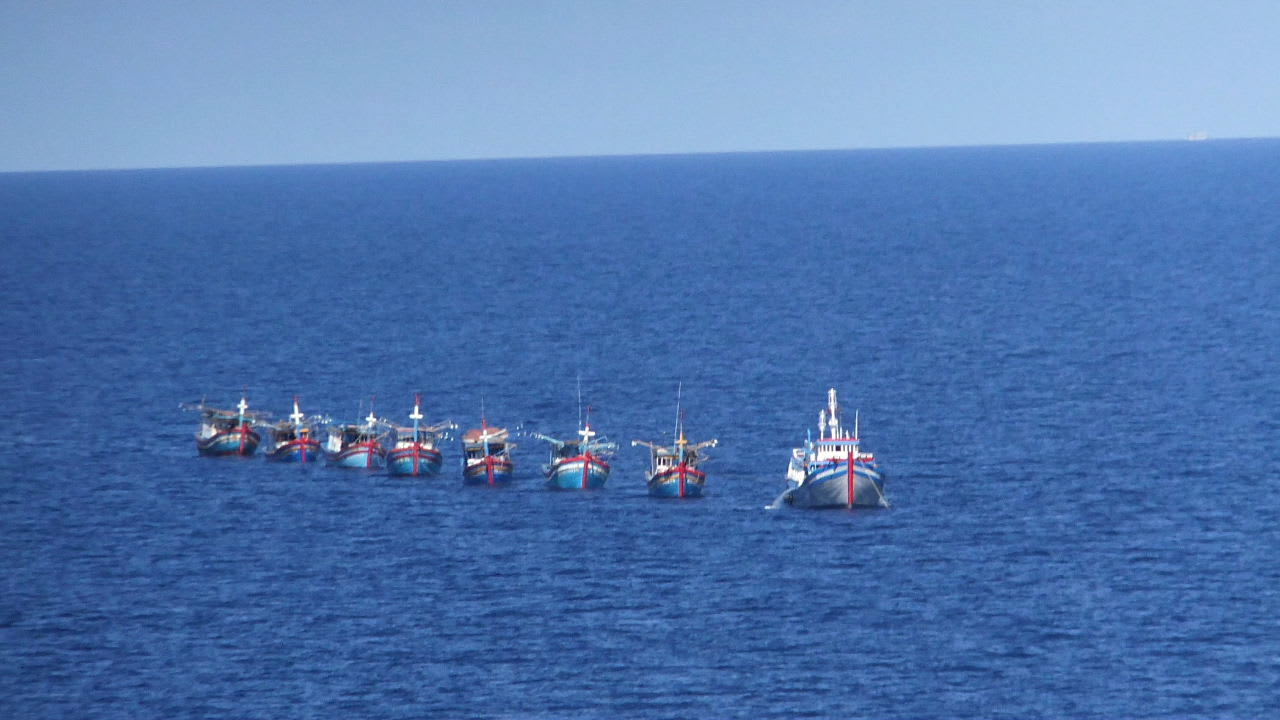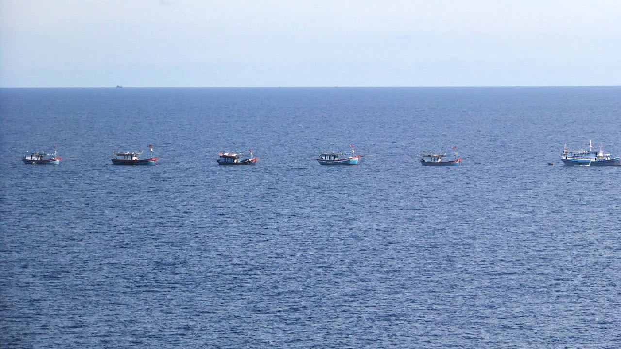 天気には恵まれた。そう思いデッキより外を見ると、なんとも変なベトナム漁船の