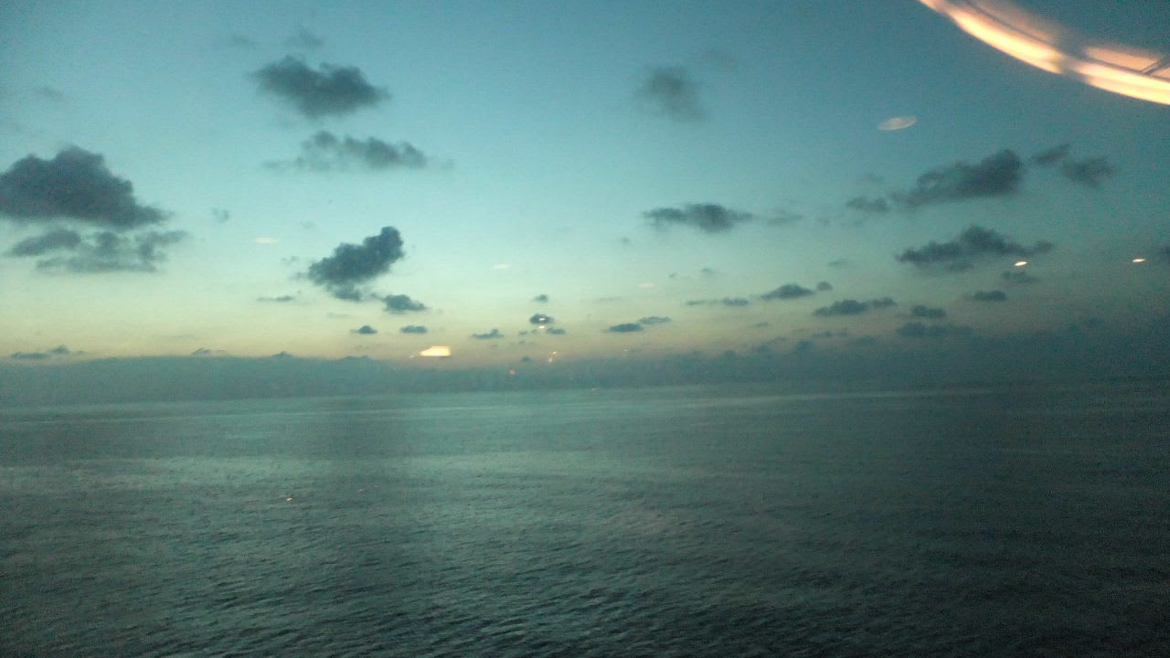 終日海の景色を楽しむ、しかしこの航海は一時的雨はあったが、概ね