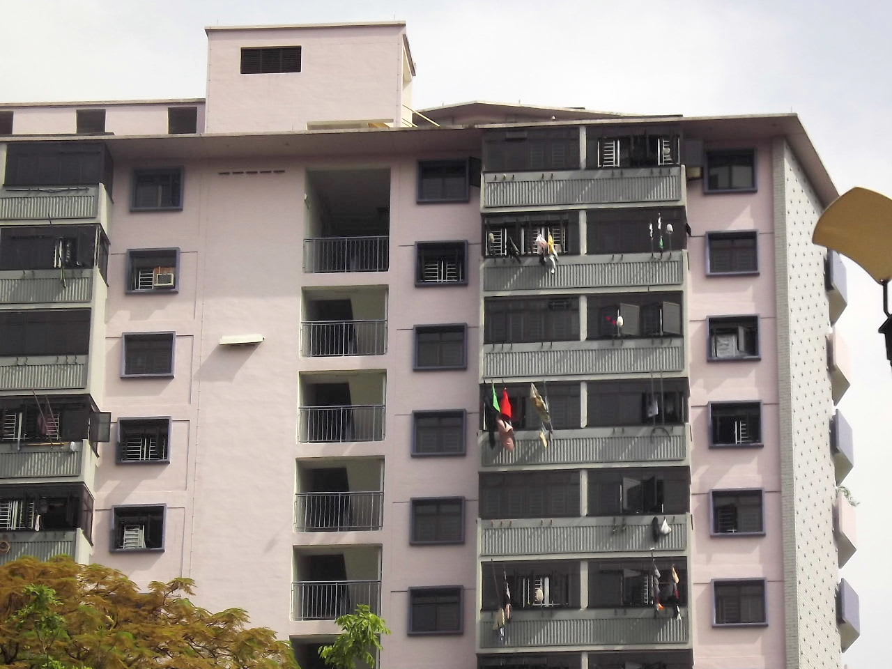 これがシンガポールの標準的マンションの洗濯物の干し方である。