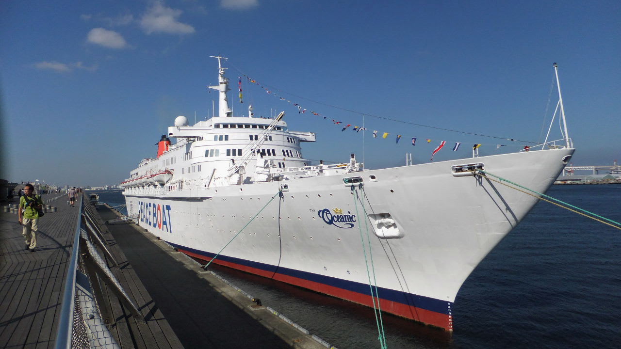 先月7月19日、台風6号が近づく中、第74回ピースボートは横浜大桟橋を