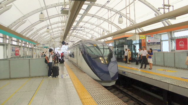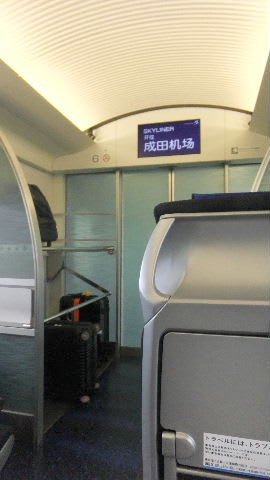 日暮里で京成線、スカイアクセス線のスカイライナーに乗る、この新アクセス線に乗るのははじめて、チケットショップでライナー券を買ったが高い。しかし成田まで37分。快適な車内。