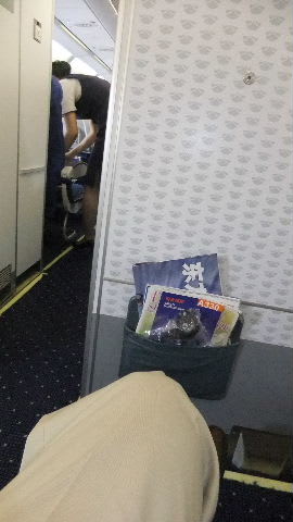 今回も席は、ベビーベットの前の席、足が伸ばせて広い。