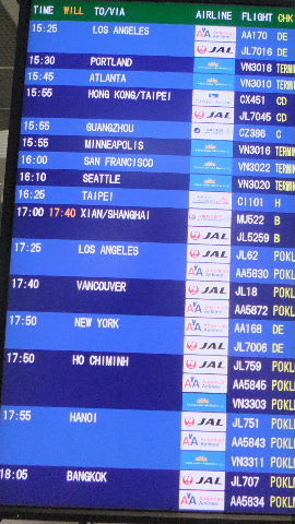 電光掲示板を見る、なんと私の乗る中国東方航空のみ、約40分遅れ。