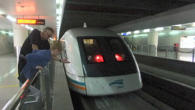 リニアのホームに出ると、上海市内よりのリニアが到着し