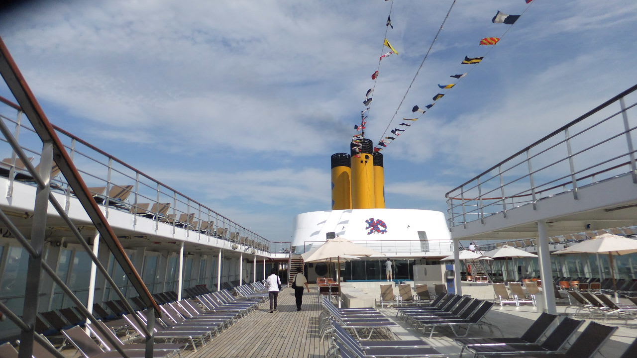 早速、最上階のデッキより眺める。なんとコスタクラシカの名物三本の