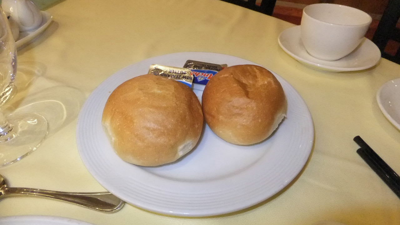 ウエイター、パン二つも盛ってくる。ようやく二つ食べた。