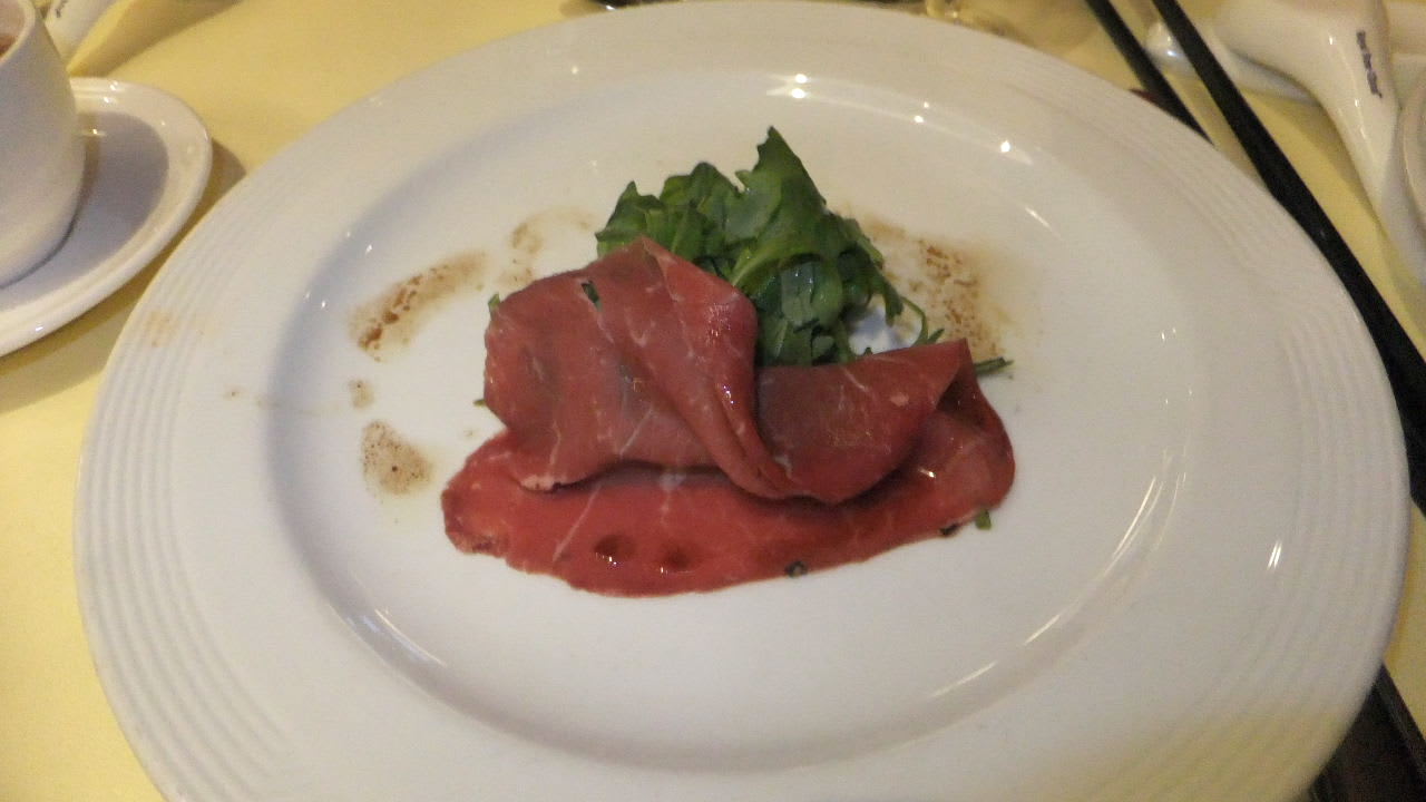 さあ乗船して初の夕食、お昼は午後4時に少し食べたが、船内を歩き回り