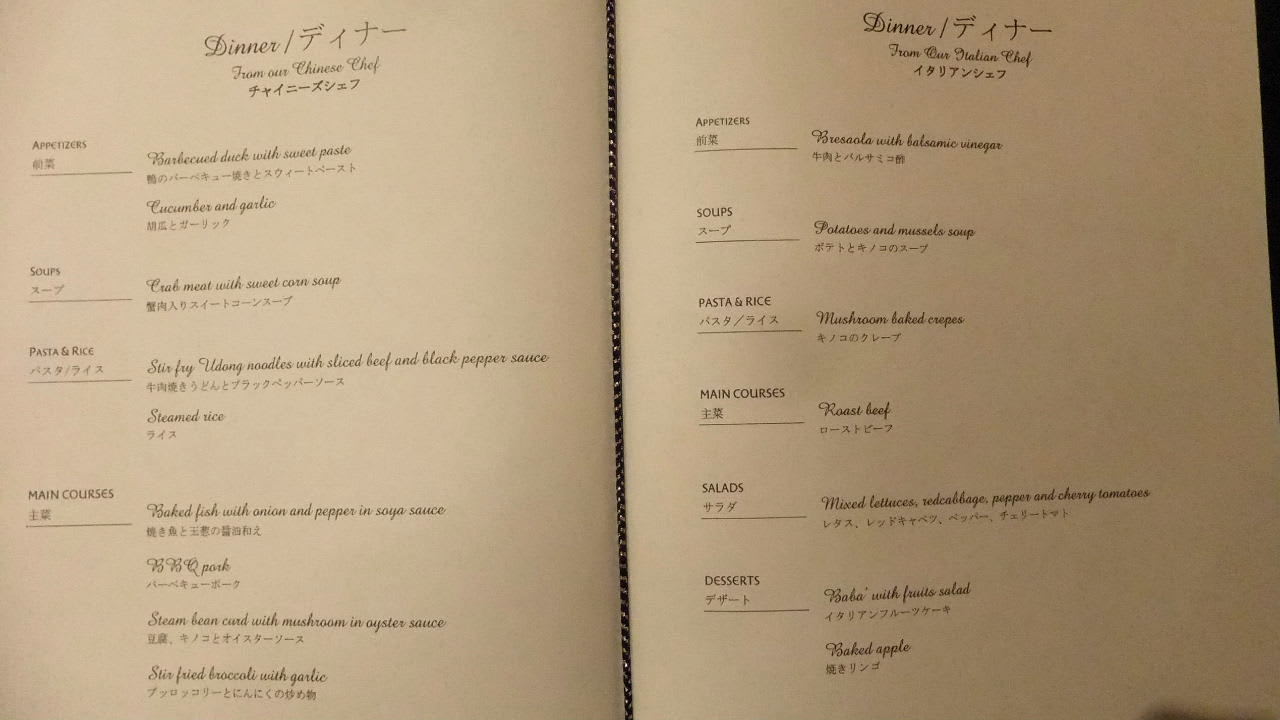 日本人コーディネーターが乗船しているので、メニューは日本語表記は