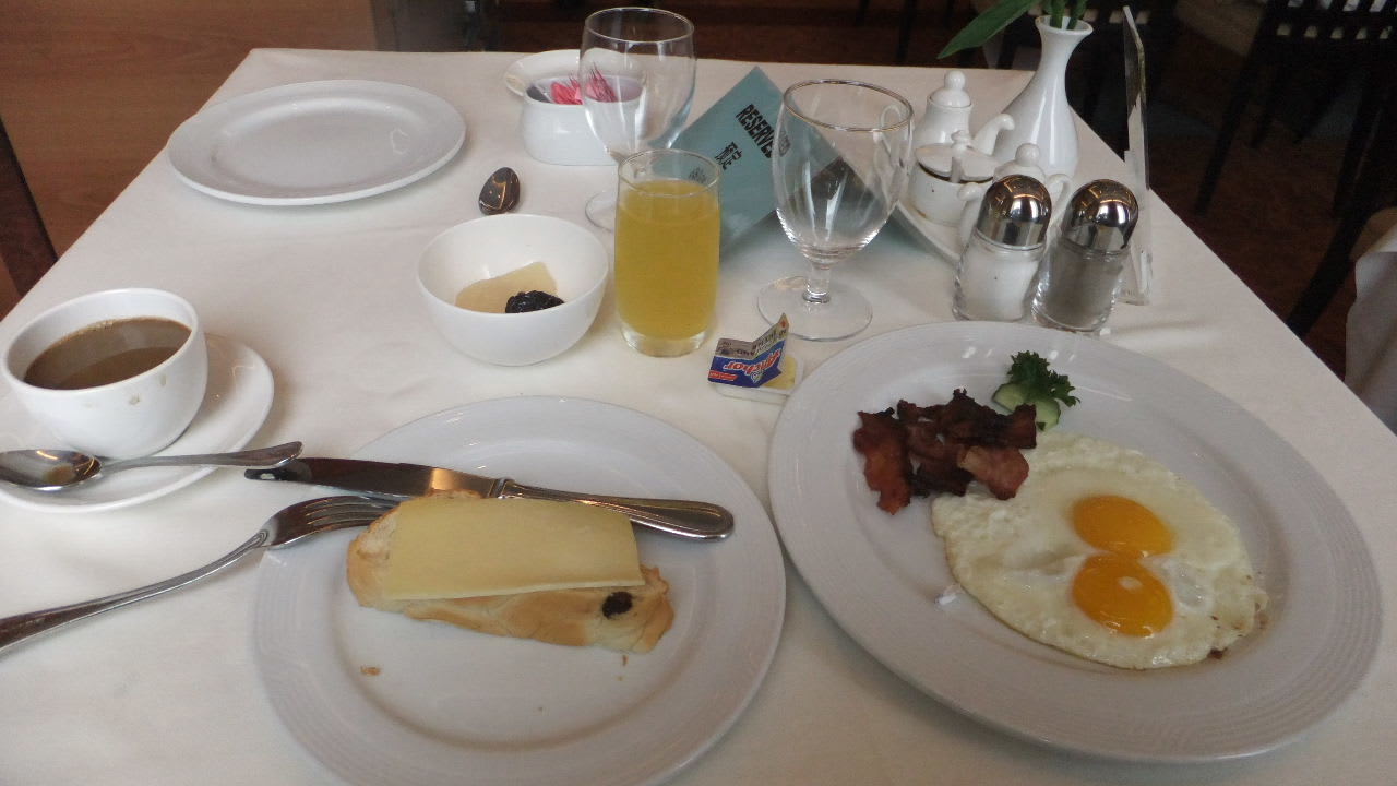 オーダーは先ず、熱いコーヒー、そして目玉焼にベーコン。