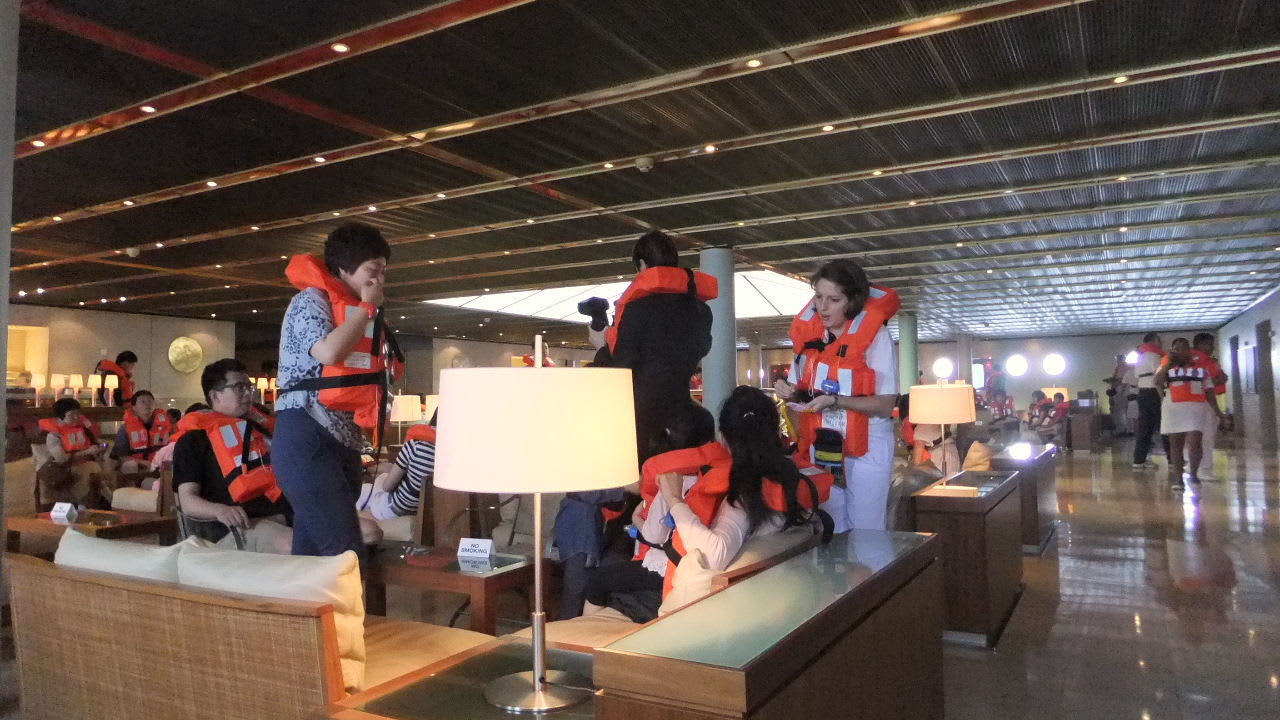 今回のコスタクラシカでは、短いサイレンが数度なると避難誘導にしたがい