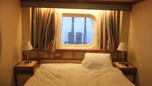 キャビンにいて、今回はオーシャンビュー独り占めの客室。