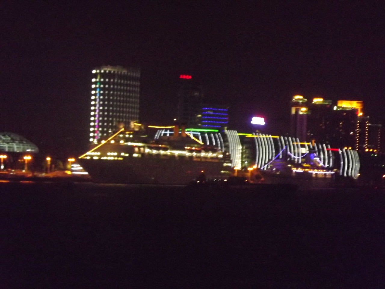 さて船の現地ツアーは、船で夕食後、浦東新区の金融街ツアーだ。