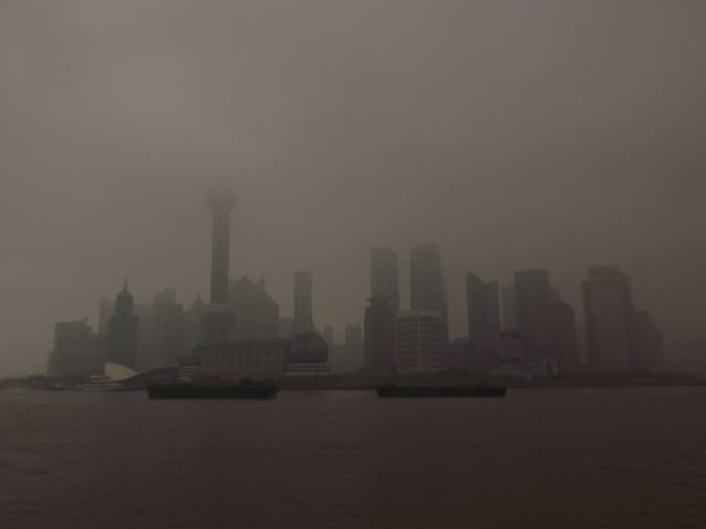 コスタが上海の国際ターミナル到着前は、かすんでいた。