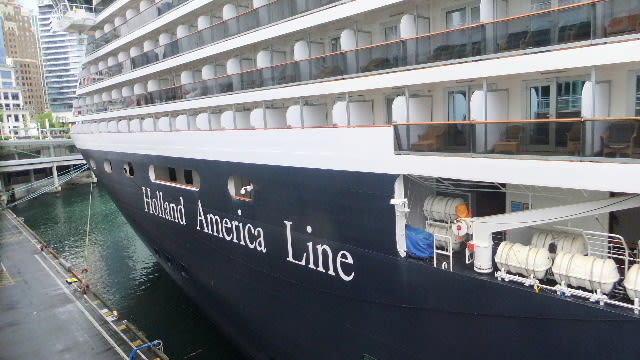 今日もウオーターフロント地区のカナダプレイスに行くと、なんと私の乗船する姉妹船のDiamond PrincessとホーランドアメリカンラインのZuiderdam〔ザイデルダム〕が停泊している。デカイ船だ。