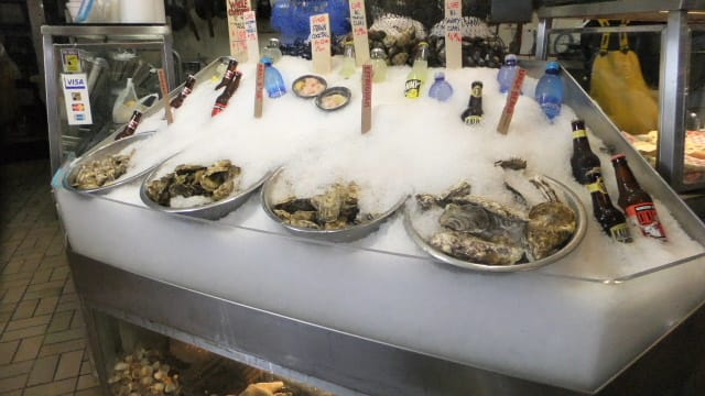 そして念願の「牡蠣」を発見。3種類あるぞ、よしここで食べよう。
