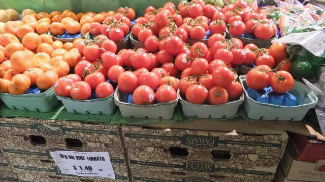 トマトも一盛り1.48㌦、2ドルとしても、160円。