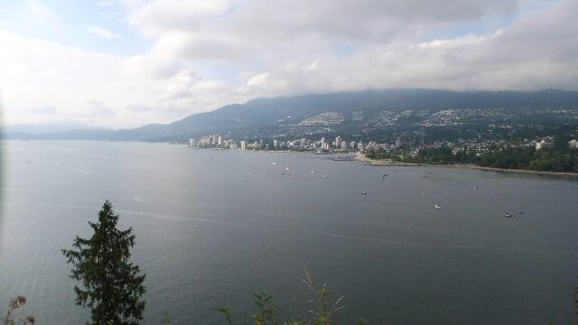 初めのご案内はスタンレー公園、バンクーバーを見下ろせる公園にて