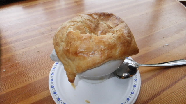 とうとうパイで蓋をしたアツアツの本場カナダのクラムチャウダーを食べた。