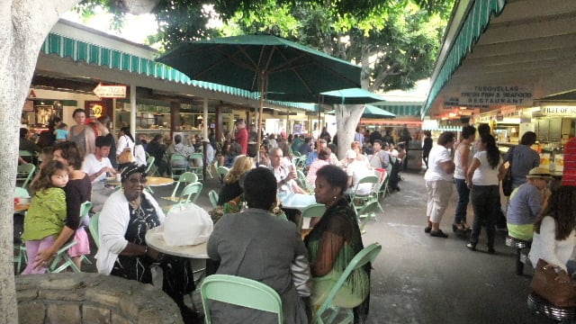 宿泊ホテルの緊急手配した1日観光ツアーは、オルベラストリートからハリウッドへ、さらにようやく遅い昼食にてハリウッドとビバリーヒルズの中間にある「フーマーズマーケット」に到着。