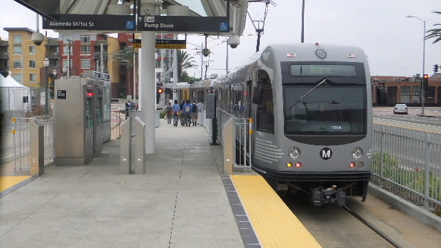 行く、リトルトウキョウのメトロの駅からゴールドラインにて、MEMORIAL PARK駅で