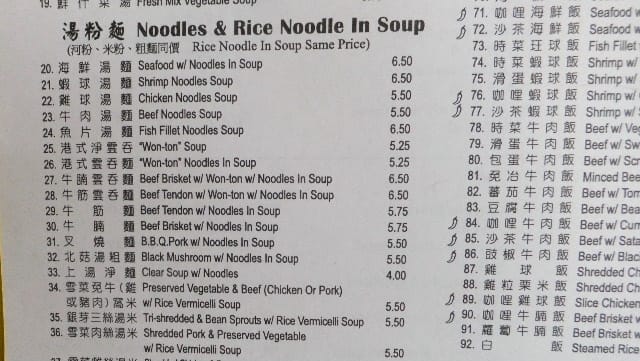 なになに一番高いのが「海鮮湯麺」で6.50ドル