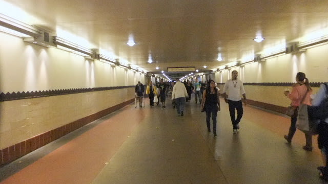 そして、駅の地下に続く道は長い。この地下道はなにやら新しい。