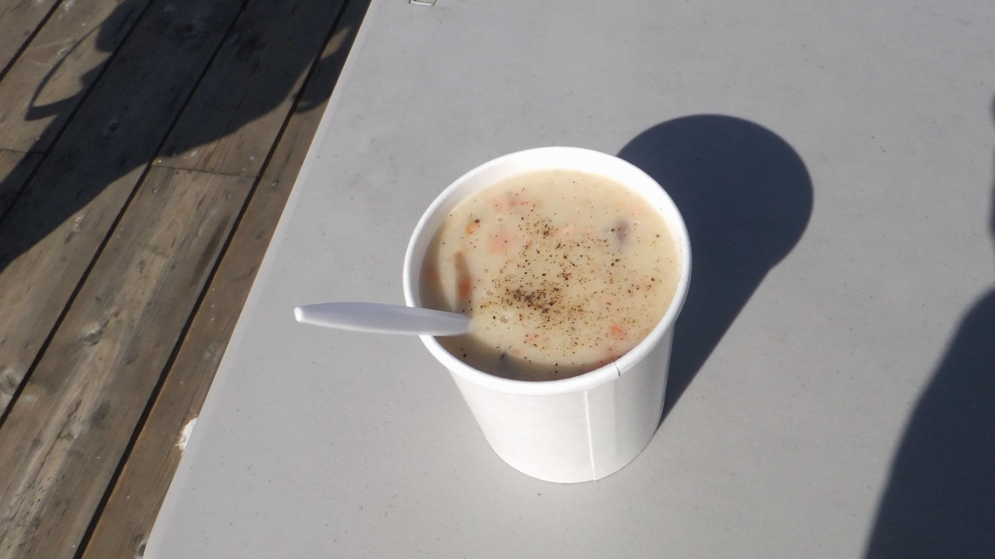 カナダビクトリアのフィシャマンズワーフで食べた牡蠣とクラムチャウダー。