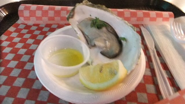 ノースバンクーバーのフェリーターミナル前のマーケットで食べた牡蠣二種類と